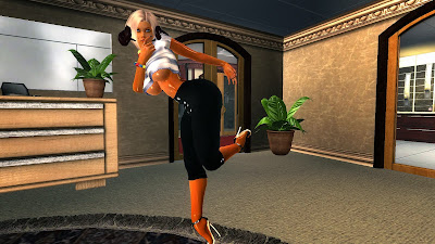The pants are nice and I love the silver buttons lined through the front. It'll look great on a TS when it's made. I'll have to find a way to make it look really nice and realistic. More on that when the time is right. I also broke a rule that I was reluctant to do in the past; I've cut the body out of the pants, so don't expect a transparent version. I've noticed that this not only saves space on the mod but it also saves you from clipping; making for a much better mesh over all. These tights don't have the same weird stretching to the side issue that the Workit Tights had. But we'll see what happens when I make a Transsexual version.